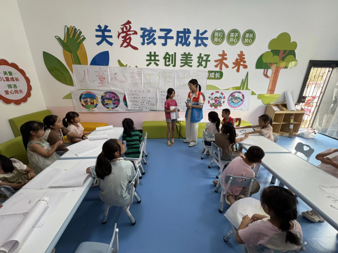 绘画结束后,社工逐一分析孩子们的作品。在分析过程中,社工从色彩运用、构图布局、人物细节等方面入手,结合孩子们的日常表现,深入解读画作背后隐藏的心理信息。孩子们用心感受自己,用画笔绘画自己,在画纸上遇见了最真实的自己,这不仅是艺术的创作,更是心灵的成长。